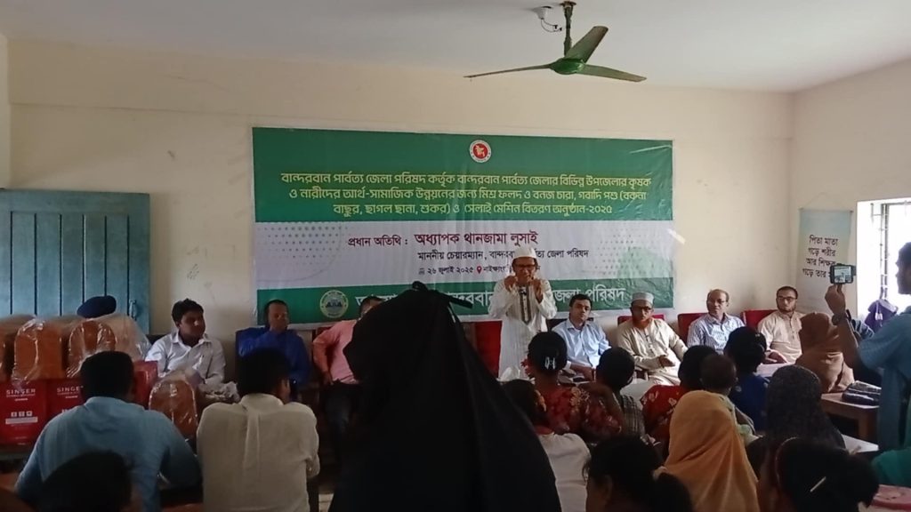 উপজেলা উন্নয়ন ফোরামের চেয়ারম্যান ও জামায়াতে ইসলামী জেনারেল সেক্রেটারি মু. আবু নাসের জানান, বান্দরবান জেলা পরিষদের উদ্যোগে কৃষি ও অসচ্ছল নারীদের আর্থ-সামাজিক উন্নয়নের বরাদ্দকৃত কর্মসূচীতে মিশ্র ফলদ ও বনজ গাছের চারা, গবাদিপশু (বকনা-বাছুর,ছাগল ছানা, শুকর) সেলাইমেশিন ও মাতৃদুগ্ধ ভাতা (নগদ অর্থ) বিতরণ করা হয় ওই অনুষ্ঠানে।