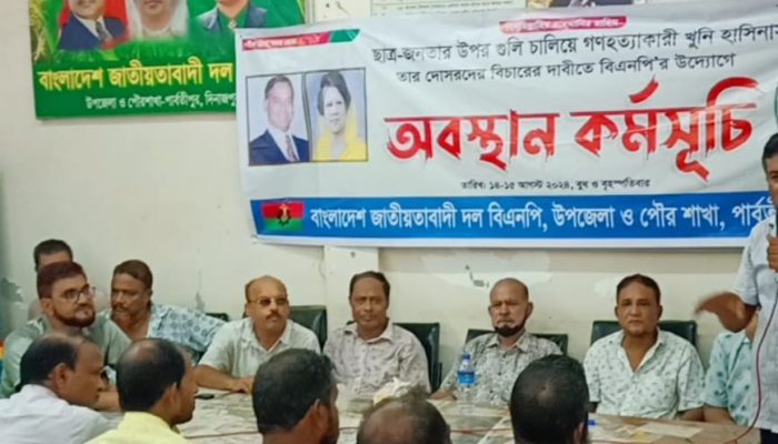আমজাদ হোসেন, পার্বতীপুর (দিনাজপুর) প্রতিনিধি: ছাত্র-জনতার উপর গুলি চালিয়ে গণহত্যাকারী খুনি হাসিনাসহ তার দোসরদের বিচারের দাবীতে বিএনপি’র উদ্যোগে অবস্থান কর্মসূচি ১৪-১৫ আগস্ট ২০২৪, বুধ ও বৃহস্পতিবার (১৪ ও ১৫ আগস্ট) বিস্তারিত