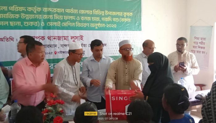 শামীম ইকবাল চৌধুরী, নাইক্ষ্যংছড়ি(বান্দরবান)থেকে:: নাইক্ষ্যংছড়িতে জেলা পরিষদের উদ্যোগে কৃষক ও নারীদের আর্থ-সামাজিক উন্নয়নের বরাদ্দকৃত অসচ্ছল পরিবারের মাঝে সেলাই মেশিন, গবাদিপশু ও নগদ অর্থ (মাতৃদুগ্ধ ভাতা) বিতরণ করা হয়েছে। শনিবার (২৬ বিস্তারিত