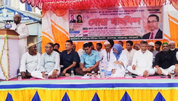 মোঃ মিজানুর রহমান, জয়পুরহাট প্রতিনিধিঃ ঢাকা মাইলস্টোন স্কুল এন্ড কলেজে মর্মান্তিক বিমান দুর্ঘটনায় জয়পুরহাটের আক্কেলপুরে নিহতদের আত্মার মাগফিরাত ও আহতদের সুস্থতা কামনায় দোয়া মাহফিল অনুষ্ঠিত হয়েছে। বৃহস্পতিবার (২৪ জুলাই) বিকেলে বিস্তারিত