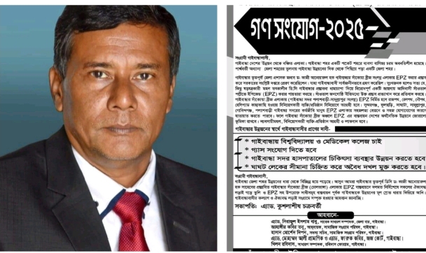 গাইবান্ধা প্রতিনিধি: দীর্ঘদিন ধরে অবহেলিত গাইবান্ধা জেলার সার্বিক অগ্রগতির জন্য সাঁকোয়া ব্রিজ এলাকায় ইপিজেড (EPZ) প্রতিষ্ঠার দাবি নতুন করে সামনে এসেছে। এ দাবিকে কেন্দ্র করে ‘গণসংযোগ-২০২৫’ কর্মসূচিতে নানা শ্রেণিপেশার মানুষ বিস্তারিত