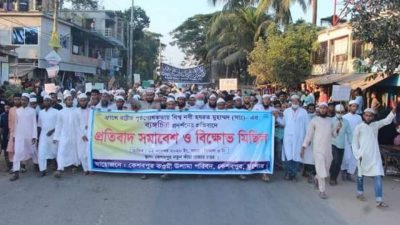 জাহিদ আবেদীন বাবু, কেশবপুর (যশোর)ঃঃ ফ্রান্সে রাষ্ট্রীয় পৃষ্ঠপোষকতায় বিশ্ব নবী হযরত মুহাম্মদ (সাঃ) এর ব্যঙ্গচিত্র প্রদর্শনের প্রতিবাদে যশোরের কেশবপুরে কওমী উলামা পরিষদের উদ্যোগে সমাবেশ ও বিক্ষোভ মিছিল অনুষ্ঠিত হয়েছে। সোমবার বিকালে বিস্তারিত