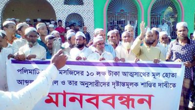ধর্মপাশা(সুনামগঞ্জ) প্রতিনিধিঃঃ সুনামগঞ্জ জেলার ধর্মপাশা উপজেলার বংশীকুন্ডা(দঃ)ইউনিয়নের পলমাটি গ্রামে কাতার চ্যারিটি কর্তৃক নবনির্মিত মসজিদ ফান্ডের ১০ লাখ টাকা আত্নসাদের অভিযোগে ও অপরাধীদের দৃষ্টান্তমূলক শাস্তির দাবিতে শুক্রবার জুমার নামাজ শেষে বিস্তারিত