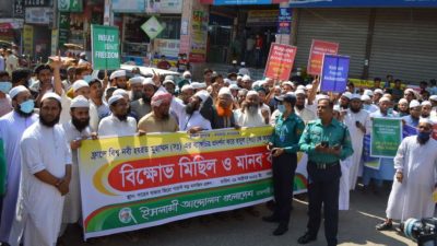 রুহুল আমীন খন্দকার, ব্যুরো প্রধান :: ফ্রান্সে বিশ্ব নবী হযরত মুহাম্মদ (স:) এর ব্যাঙ্গচিত্র প্রদর্শন করে রাসূলুল্লাহ (স:)কে অবমাননা করার প্রতিবাদে রাজশাহীতে বিক্ষোভ মিছিল ও মানববন্ধন অনুষ্ঠিত হয়েছে। এ কর্মসূচির বিস্তারিত