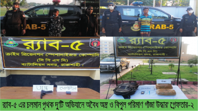 রুহুল আমীন খন্দকার, ব্যুরো প্রধান :: অস্ত্র, মাদক, সন্ত্রাস ও জঙ্গিবাদ নির্মূলে নিরলসভাবে কাজ করে যাচ্ছেন র্যাপিড এ্যাকশান ব্যাটলিয়ান (র্যাব)। এর’ই ধারাবাহিকতায় নিজস্ব গোয়েন্দা তথ্যের ভিত্তিতে র্যাব-৫, রাজশাহীর সিপিএসসি, মোল্লাপাড়া বিস্তারিত