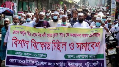 পটুয়াখালী প্রতিনিধিঃঃ ফ্রান্সে কার্টুন চিত্র একে বিশ্ব নবী হযরত মুহম্মাদ (সাঃ) কে অবমাননা করার প্রতিবাদে পটুয়াখালীর কলাপাড়ায় বিক্ষোভ মিছিল ও সমাবেশ অনুষ্ঠিত হয়েছে। মঙ্গলবার সকাল ১১টায় ইমাম মুয়াজ্জিন কল্যাণ সমিতির বিস্তারিত