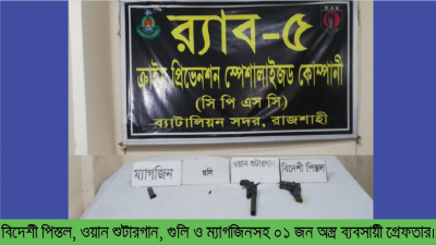 রুহুল আমীন খন্দকার, ব্যুরো প্রধান :: অস্ত্র, মাদক, সন্ত্রাস ও জঙ্গিবাদ নির্মূলে নিরলসভাবে কাজ করে যাচ্ছেন র্যাপিড এ্যাকশান ব্যাটলিয়ান (র্যাব)। এর’ই ধারাবাহিকতায় নিজস্ব গোয়েন্দা তথ্যের ভিত্তিতে র্যাব-৫, রাজশাহীর সিপিএসসি, মোল্লাপাড়া বিস্তারিত