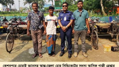 জাহিদ আবেদীন বাবু, কেশবপুর (যশোর)ঃঃ যশোরের কেশবপুরে চোরাই মোটর ভ্যানসহ আন্তঃজেলা চোর সিন্ডিকেটের সদস্য ও ক্রয় বিক্রয় সিন্ডিকেট প্রধান কেশবপুর পৌরসভার ২নং ভোগতি ওয়ার্ড আওয়ামীলীগের সভাপতিসহ ৬জনকে পুলিশ গ্রেফতার করেছে বিস্তারিত